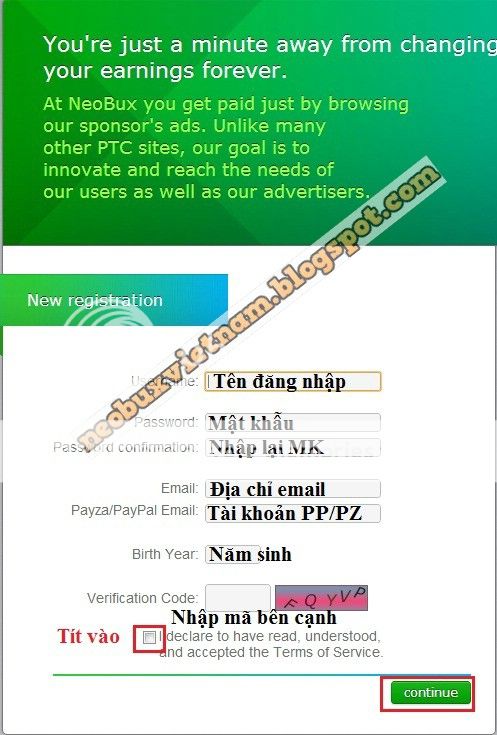 -Bài viết này sẽ hướng dẫn một cách đầy đủ nhất, chi tiết nhất để các bạn đăng ký thành công 100% một account Neobux. Mình sẽ hướng dẫn một cách cặn kẽ để những người đang tìm hiểu về ptc, tìm hiểu về Neobux có thể đăng ký hoàn chỉnh một tài khoản kiếm tiền với Neobux.