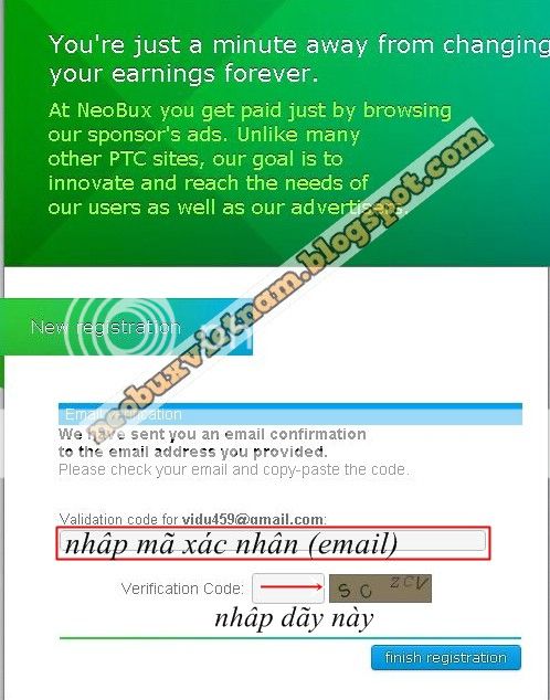 (Bạn phải nhập email chính xác để Neobux xác nhận việc đăng kí tài khoản của bạn)