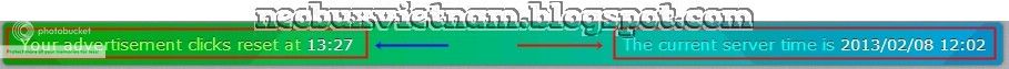 -Tại sao vậy? Server Time là giờ hệ thống của Neobux. Trong trường hợp này có nghĩa là NBVN click ads trước khi đến giờ hệ thống Neobux Resest Ads ( 13:27), NBVN click lúc 1h sáng nên vẫn được công nhận là đã click ads. Tuy nhiên NBVN click ads sau 00:00 có nghĩa là Neobux xác nhận NBVN không còn click vào khoảng thời gian (13:27~>00:00) như thường lệ nửa mà chuyển sang click vào khoảng (00:00~>13:27). Tức là có sự thay đổi giữa 2 khoảng thời gian click ads