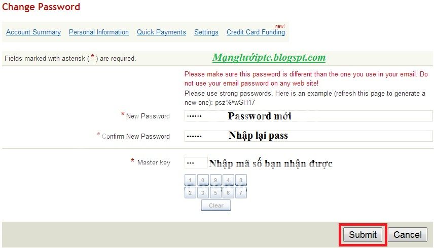 - Paypal/Payza Email: Nhập địa chỉ email bạn dùng để đăng kí Paypal hoặc Payza
