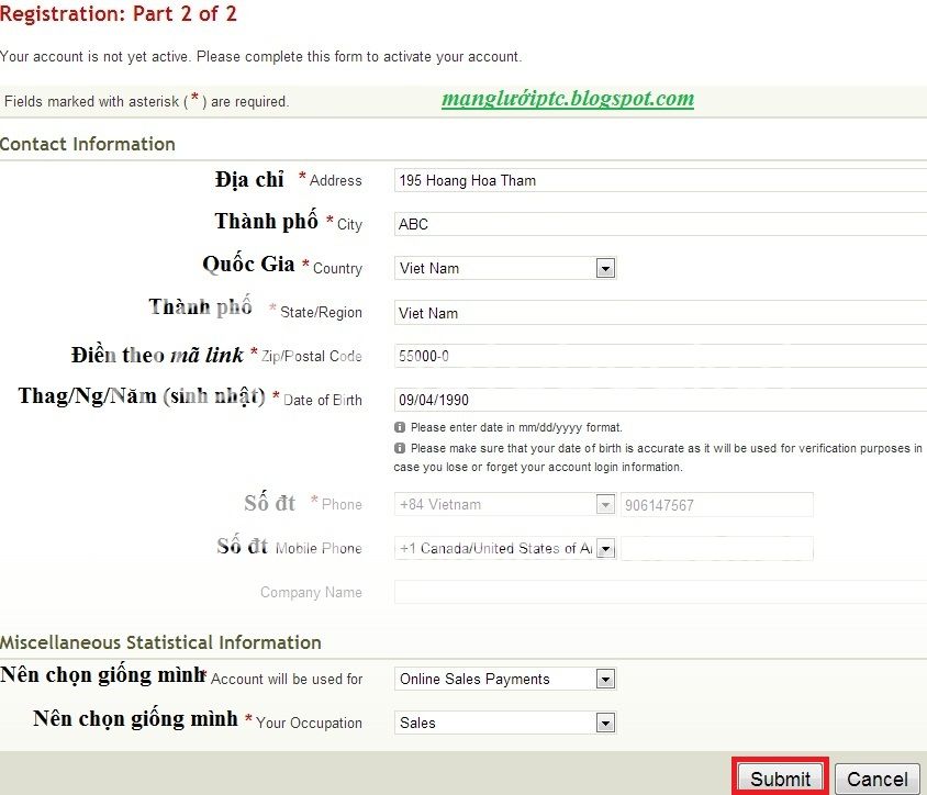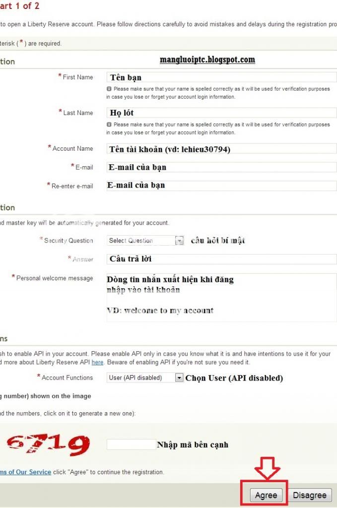 Bước 2: Sau khi chọn register =>Xuất hiện hình ảnh bên dưới, bạn phải điền thông tin chính xác về tài khoản của mình