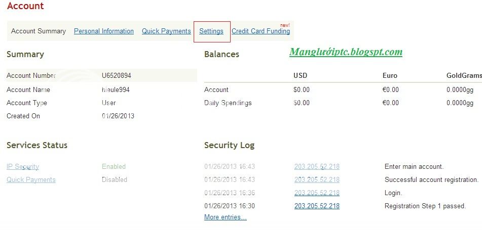 -Lưu ý: Đây là tài khoản ngân online mà bạn sẽ rút tiền kiếm được từ Neobux về tài khoản. Sau đó từ tài khoản này chuyển về thẻ ngân hàng ở Việt Nam